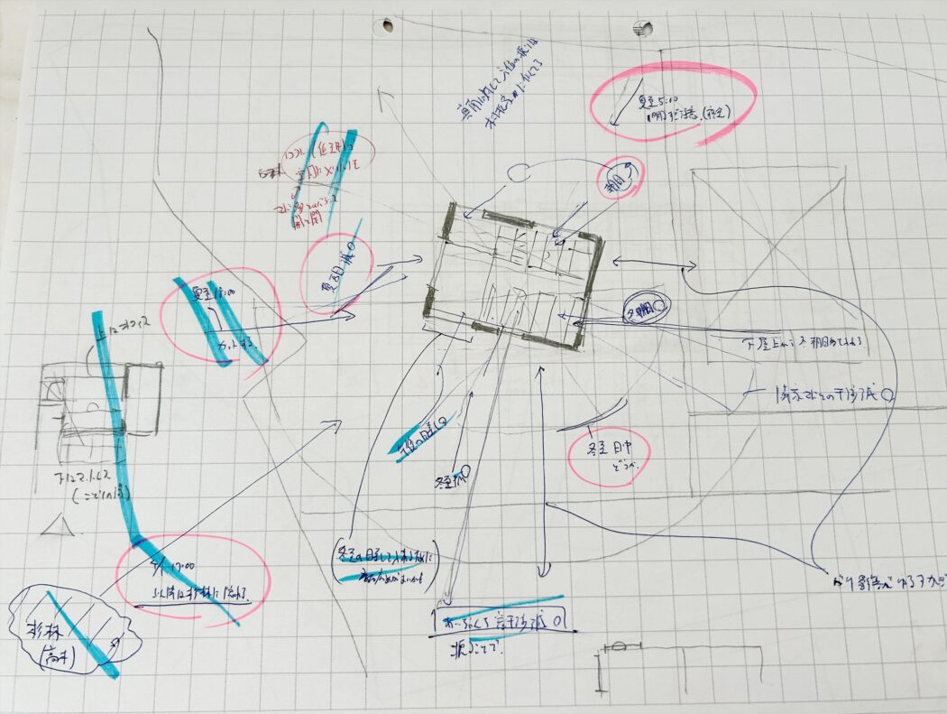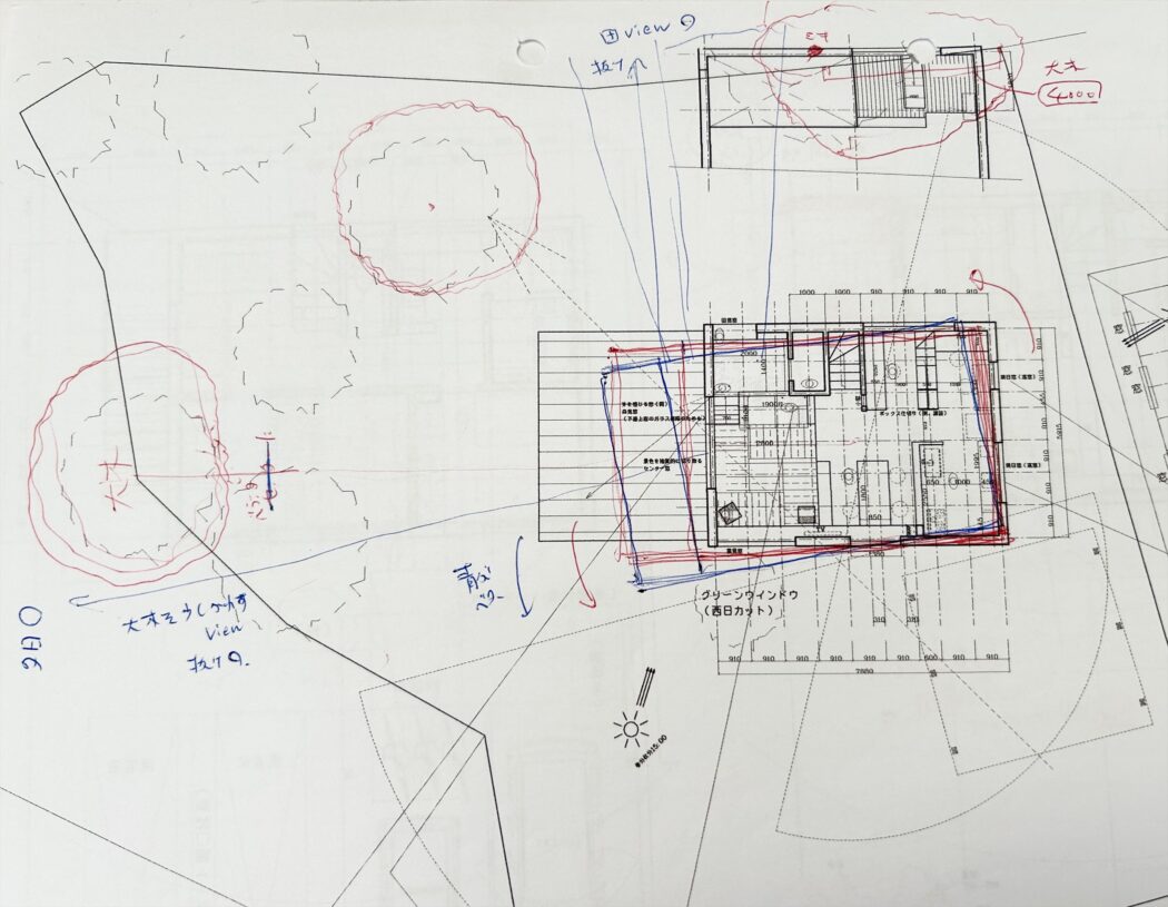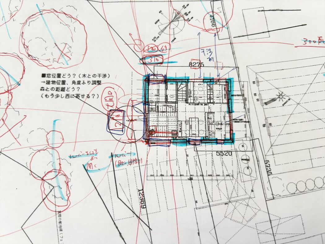 「敷地が大きくて配置に制限がない(家を自由に配置できる)のも悩みものだな」と生みの苦しみを感じたり、それを楽しんだり。