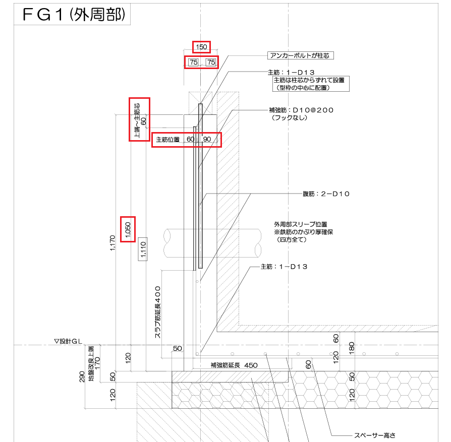 アンカーボルトの種類、埋め込み深さが図面通りであること確認。