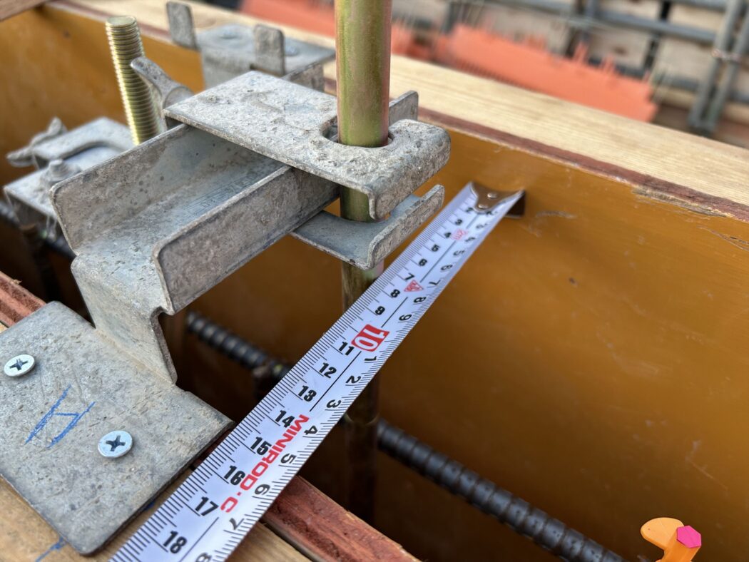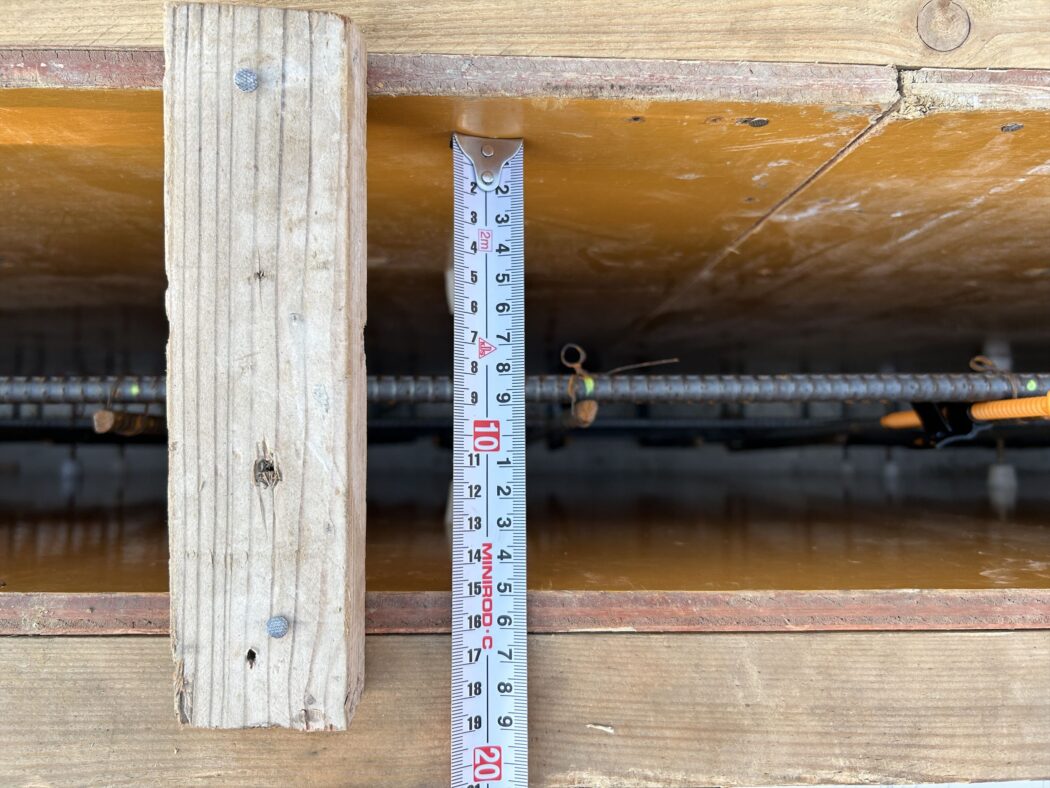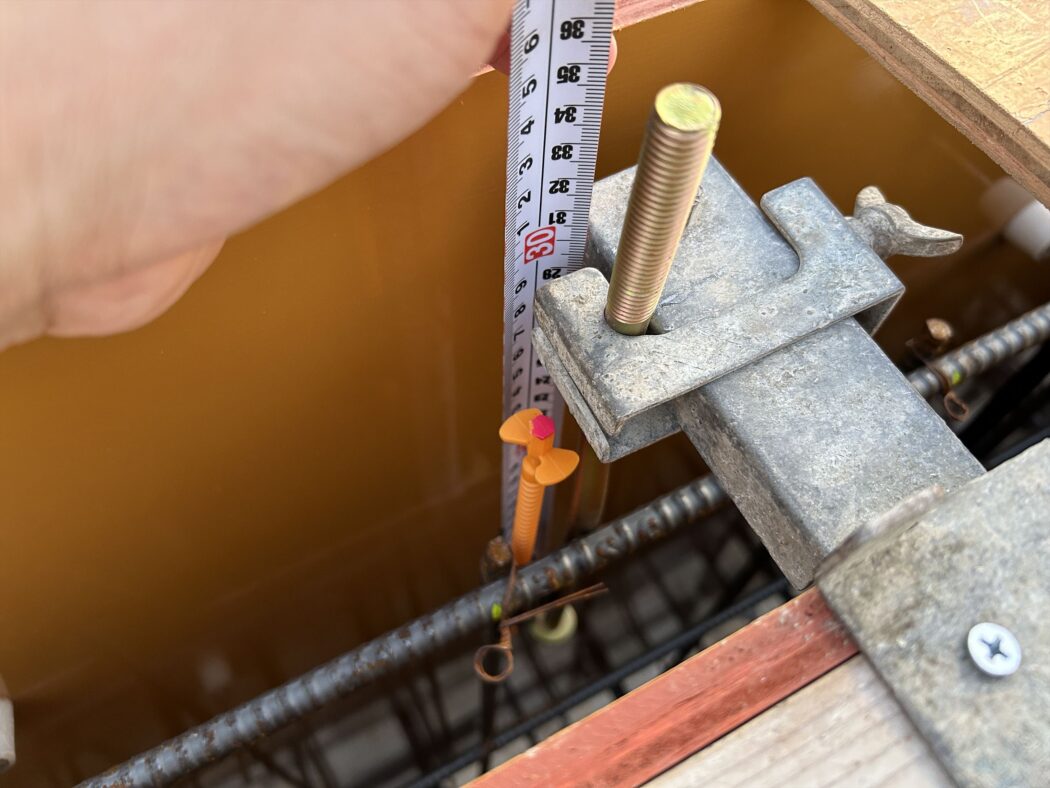 主筋の位置(型枠からの距離=かぶり厚)が図面通りであることを確認。