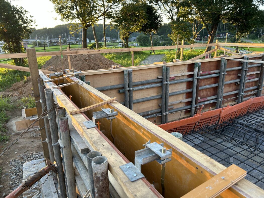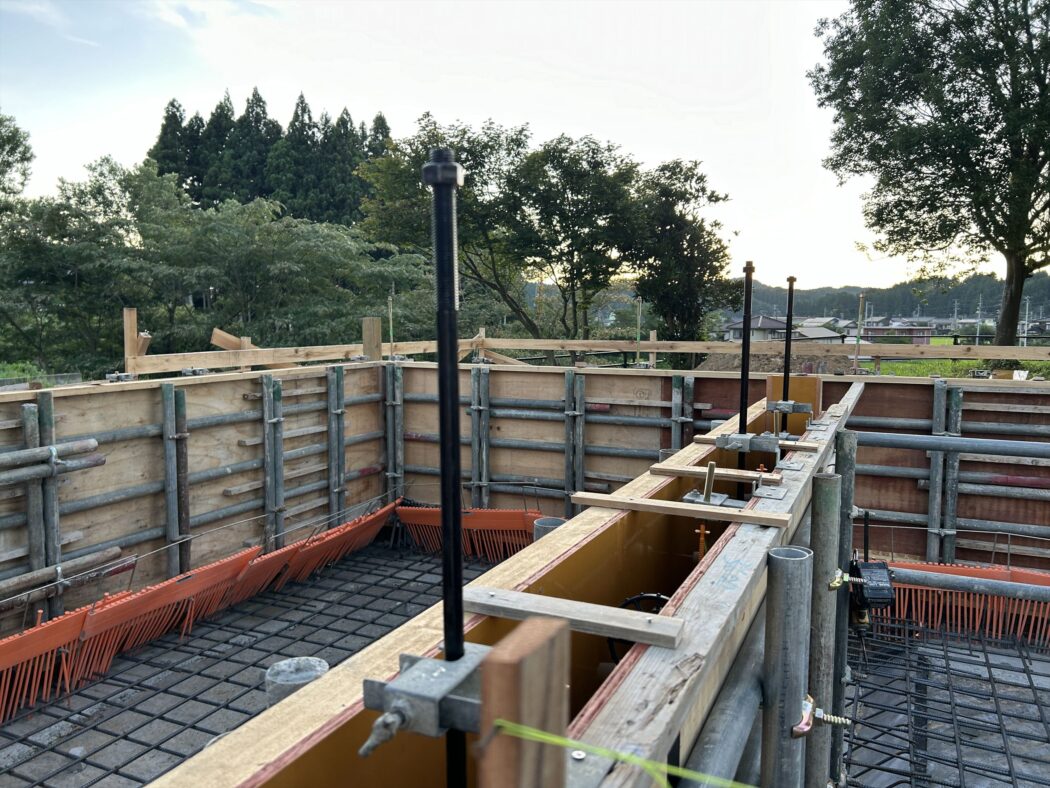 アンカーボルト-型枠監理が完了し、いよいよコンクリート打設へ。