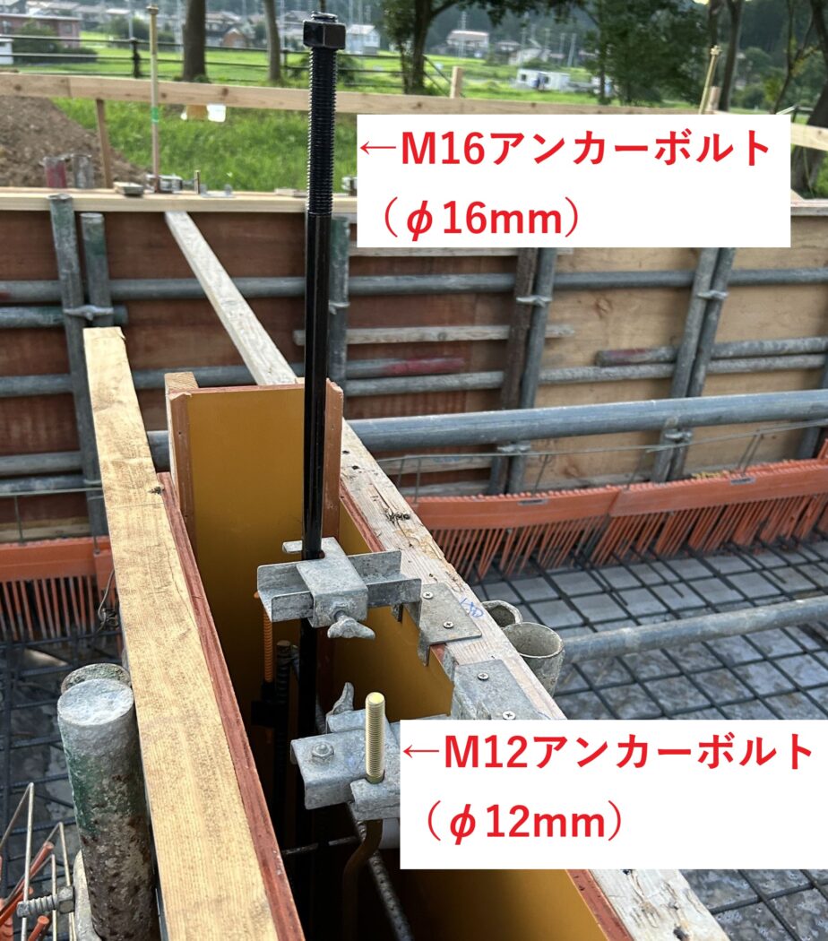 アンカーボルトは直径16mmのM16と直径12mmのM12を併用する。