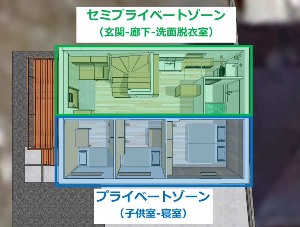 【自邸-23】検討メモ紹介『ウッドデッキ玄関ポーチ。』自然を感じる半屋外空間。-要点メモ-パース紹介- - 住宅設計エスネルデザイン