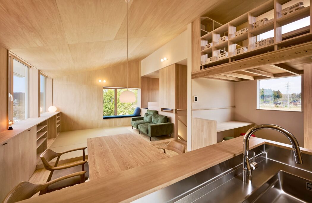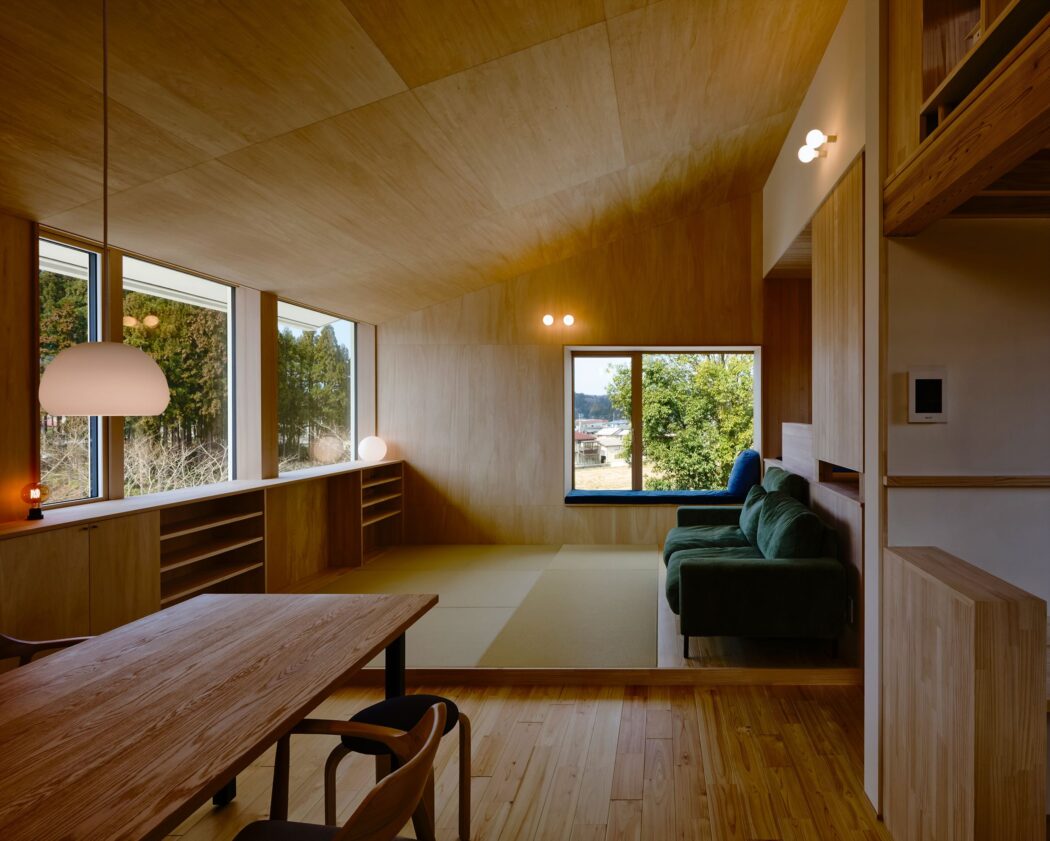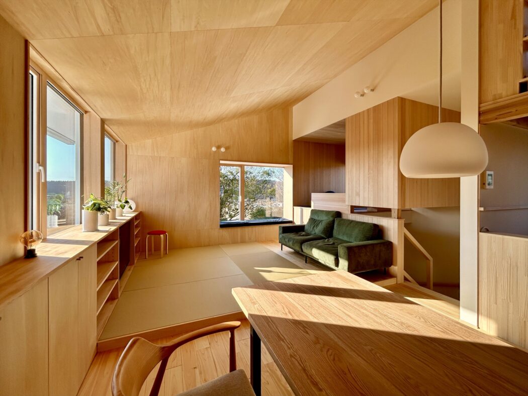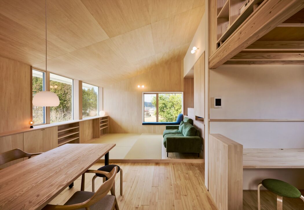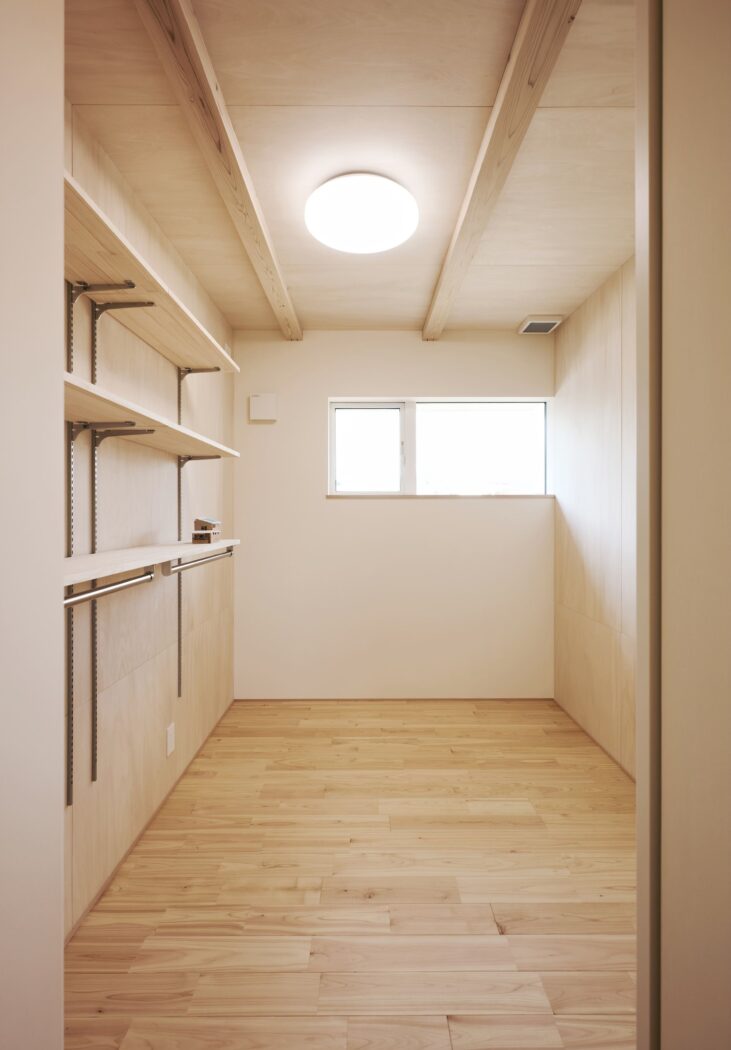 を叶えたいという思いから天井-壁はシナ合板張りとした。