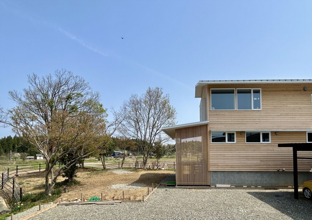 (断熱性G3、耐震等級3(積雪考慮、Z=1.0)、太陽光、国産杉活用、植栽)