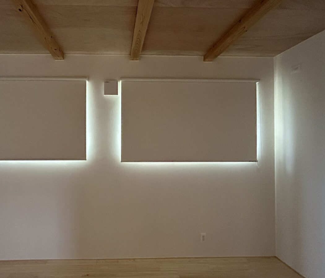 (上写真の左窓は上部を8cmほど掘り込みブラインドを納めている)