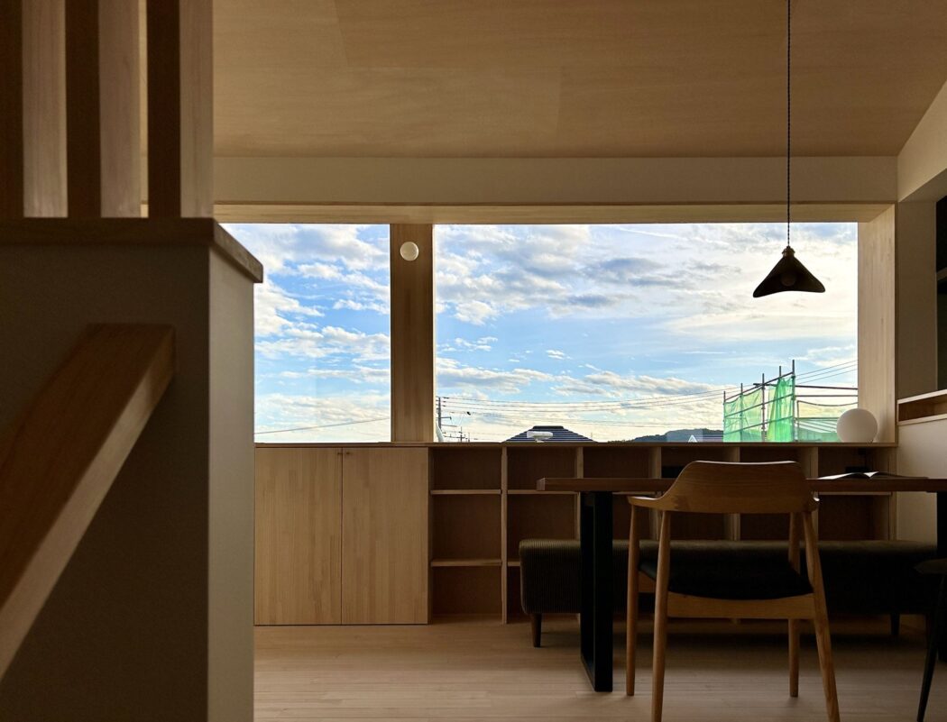 日中はブラインドを開けていても人の視線は気にならず、代わりに山や空の景色が目に入ります。