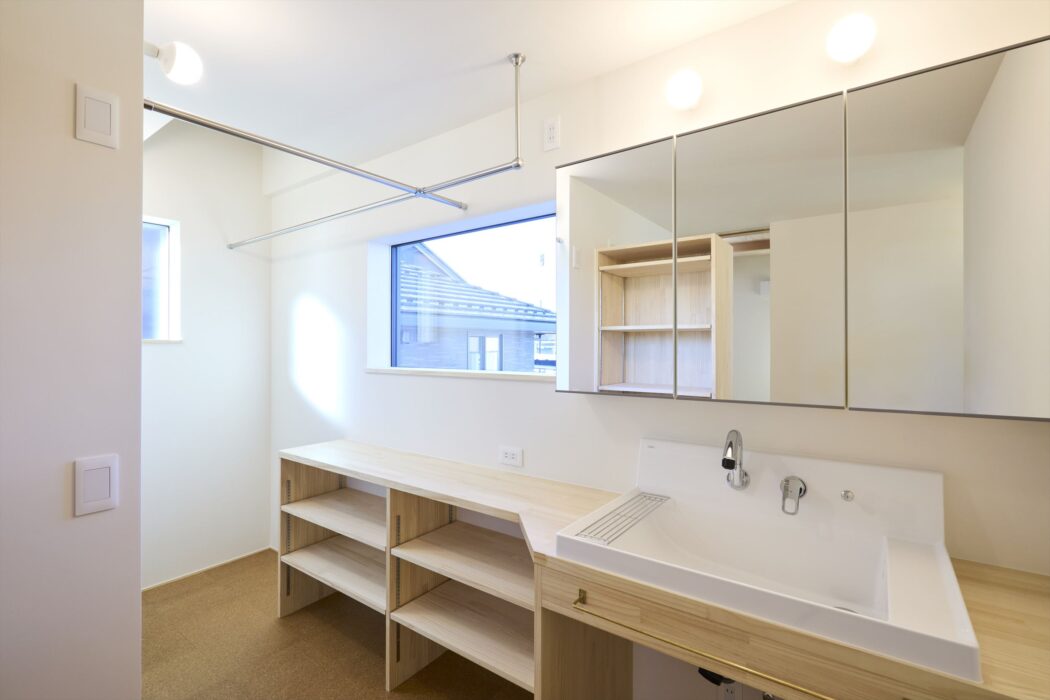【秘訣】マルチWIC『洗面-洗濯-脱衣-収納室。』洗う-干す-たたむ-仕舞うを最短距離で。-小さな家の心臓部- - 住宅設計エスネルデザイン