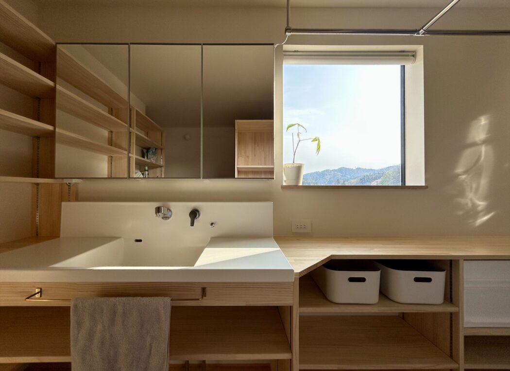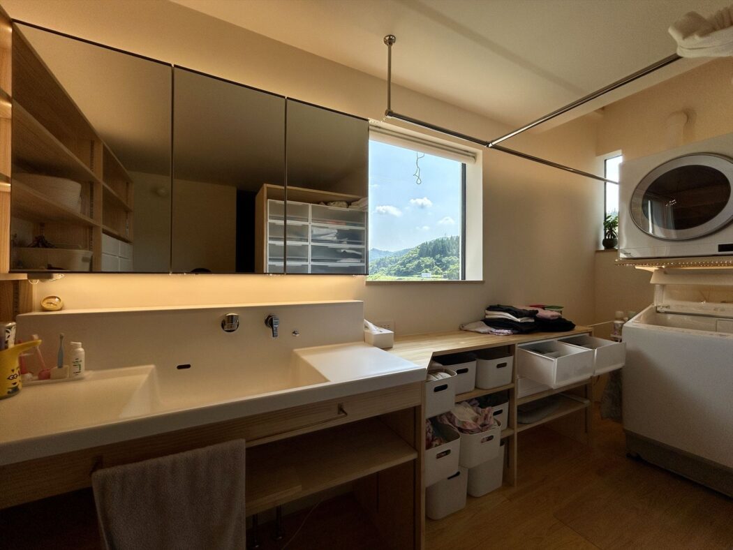 小さな家であっても洗面脱衣収納スペースは十分に確保する。