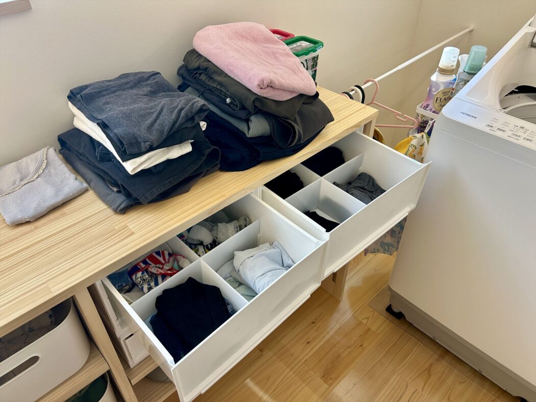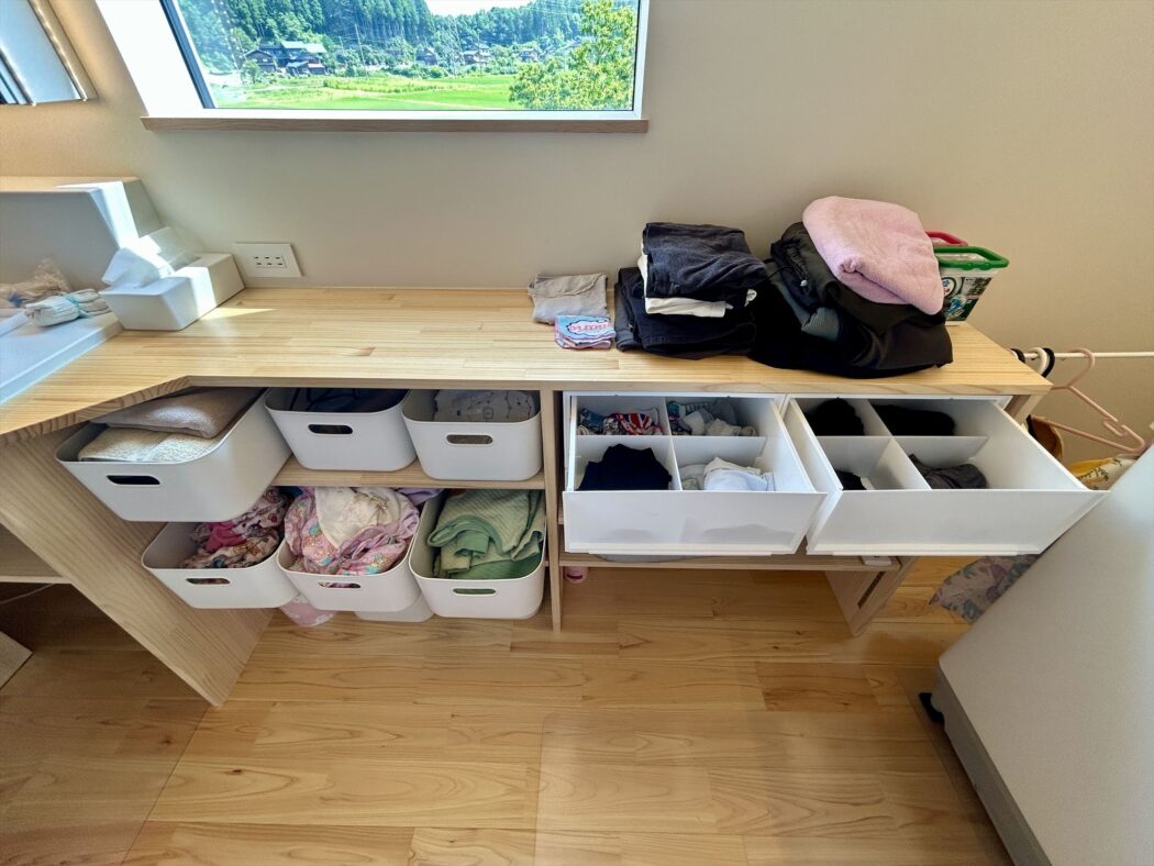 衣類をカウンター上に置いておき子供に自分で仕舞わせることも容易。