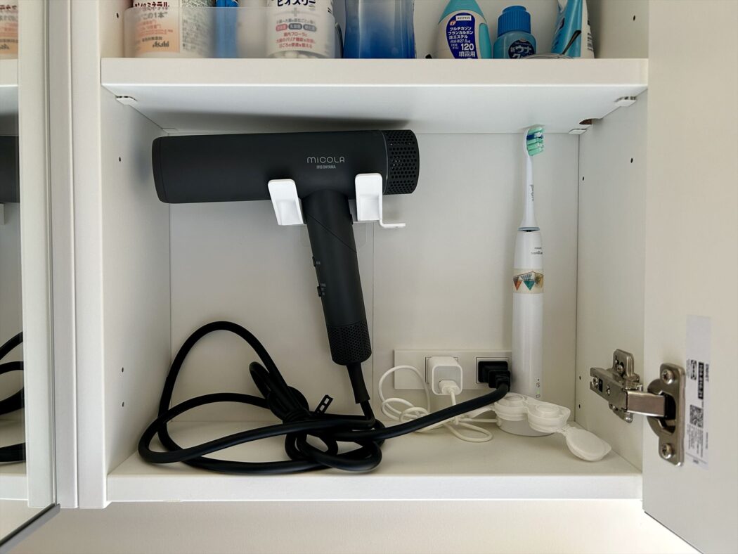 ドライヤーや電動歯ブラシなどを収納できるのも嬉しい^ ^