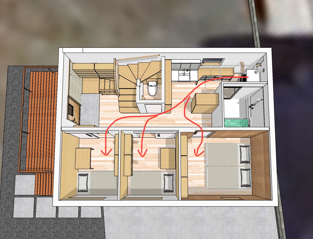 自邸プラン(「水回り+個室」が1階、LDKは2階)は他にも利点を兼ね備えています^ ^