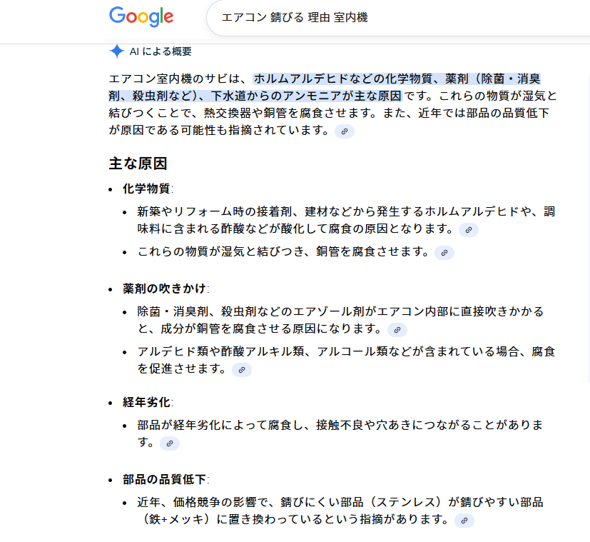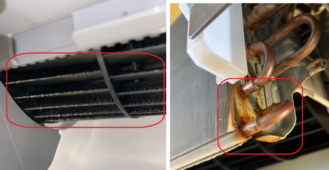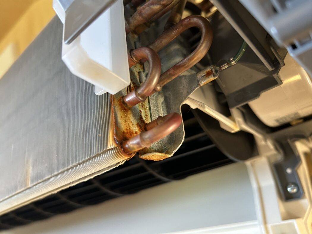 また冷房エアコンの問題はカビだけでなくサビもある。