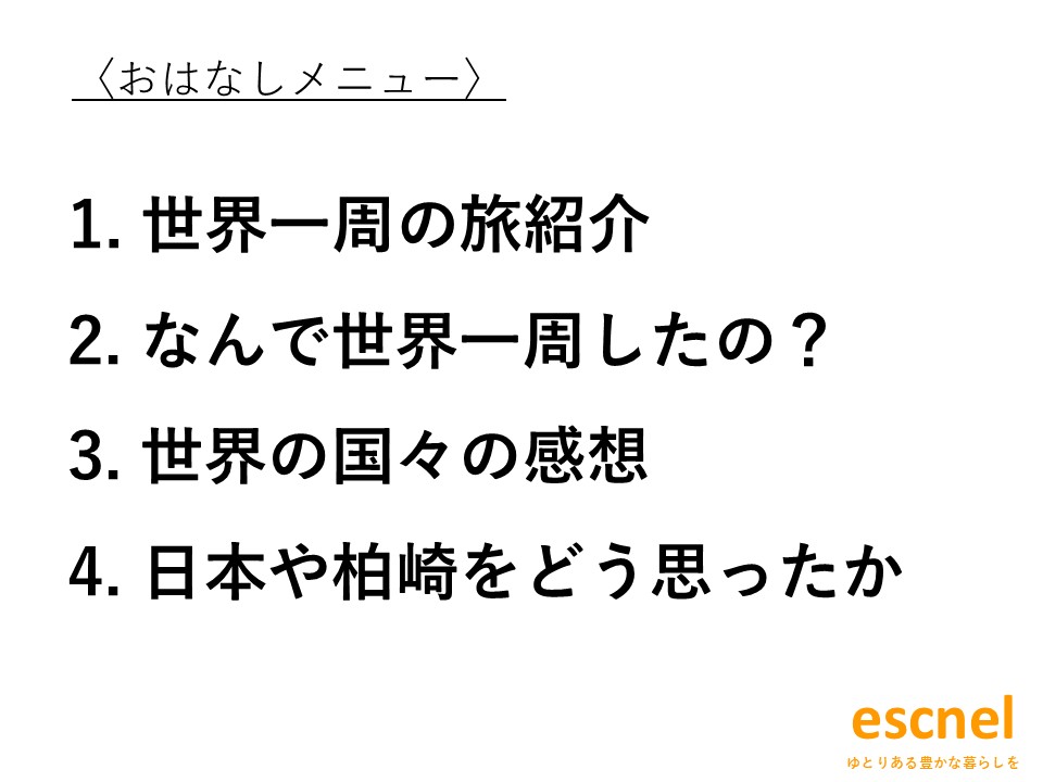 旅から戻り、ずっと「いろいろな人に世界の話をしたい」と思っていました。