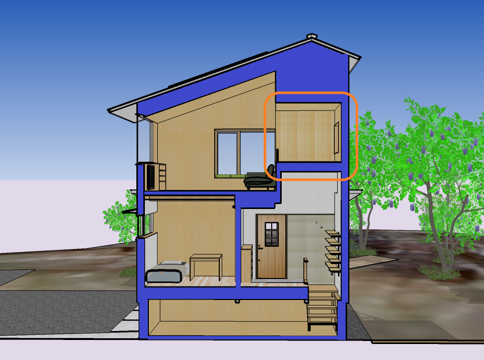 【秘訣】断面設計『広く感じる空間-勾配天井-床下収納。』空間の有効活用-小さな家を広く暮らす- - 住宅設計エスネルデザイン