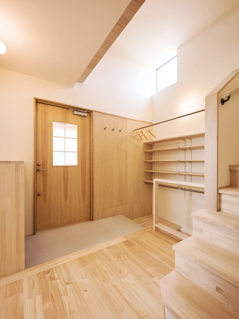 デイベッド床を上げることで暗く圧迫感の出やすい玄関に広がりを与えることも叶えている。