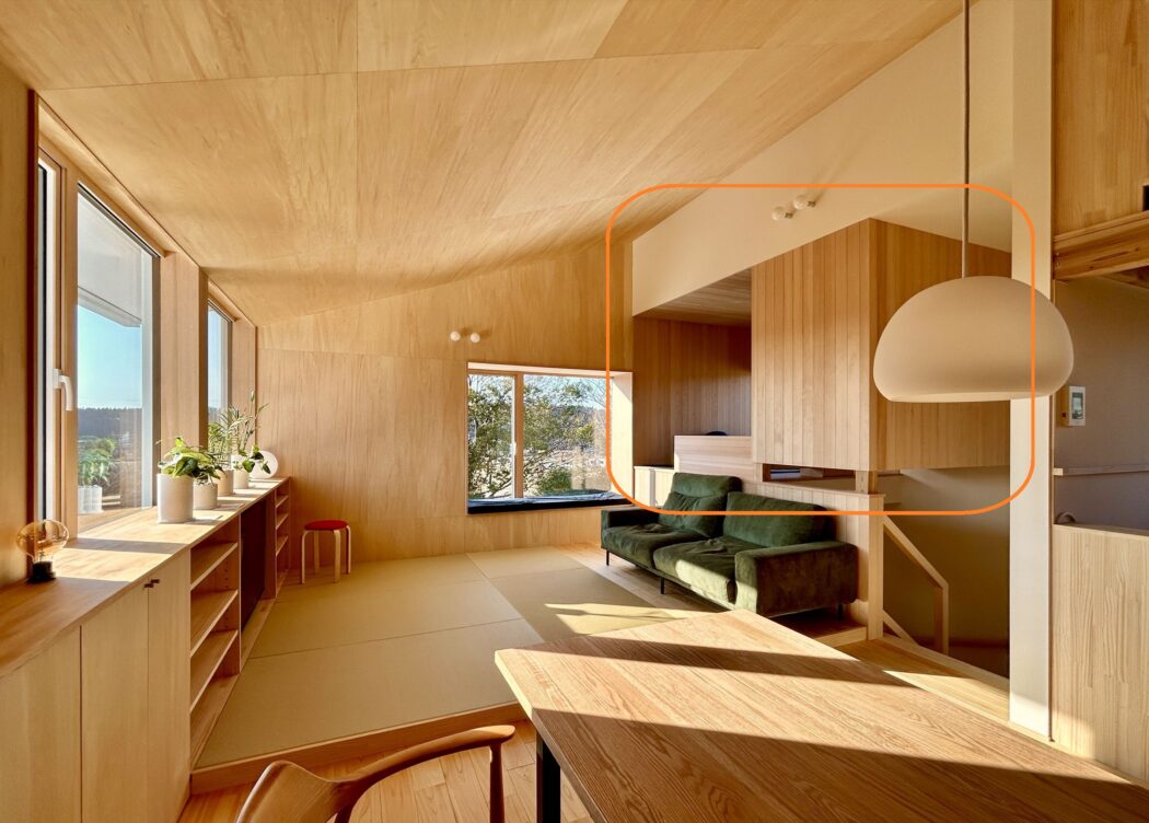床の高さを変えることで『異なる居心地』『こもり感』を造り出す。
