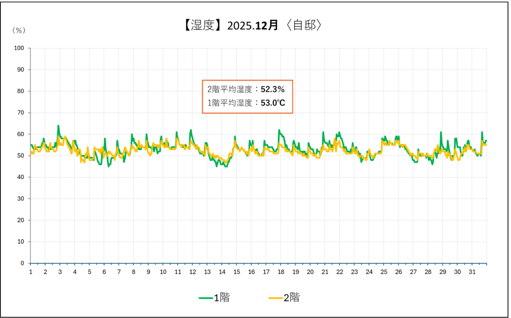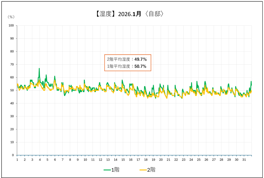 〇1-2階とも概ね湿度50%程。