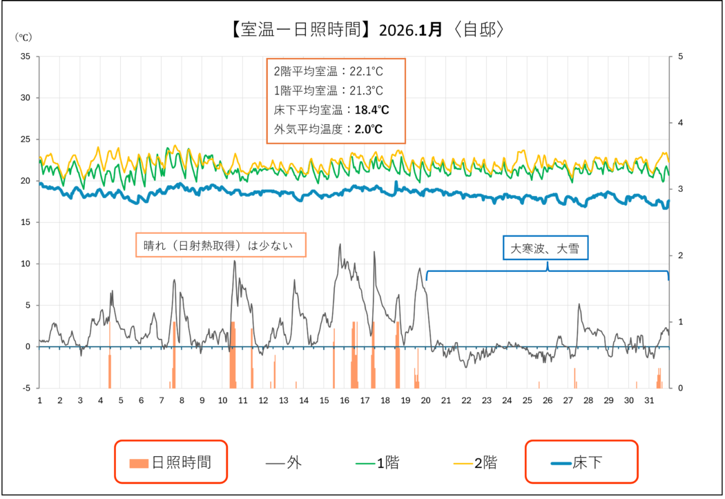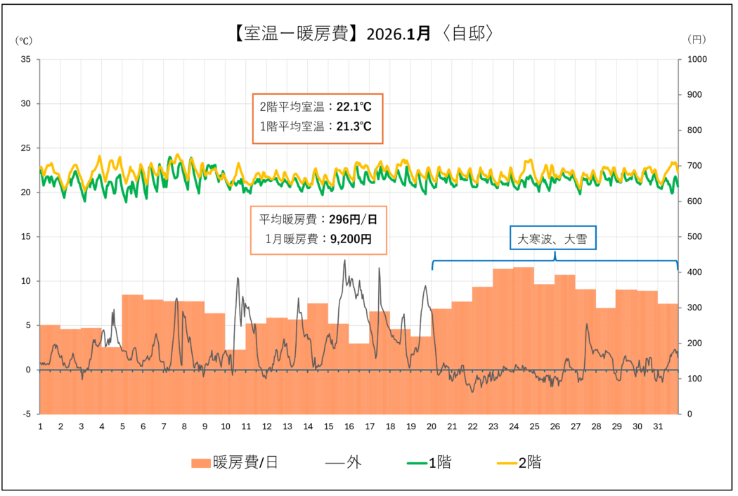 ※2026.1月は長期大寒波により外気温は例年より3~4℃低かった。