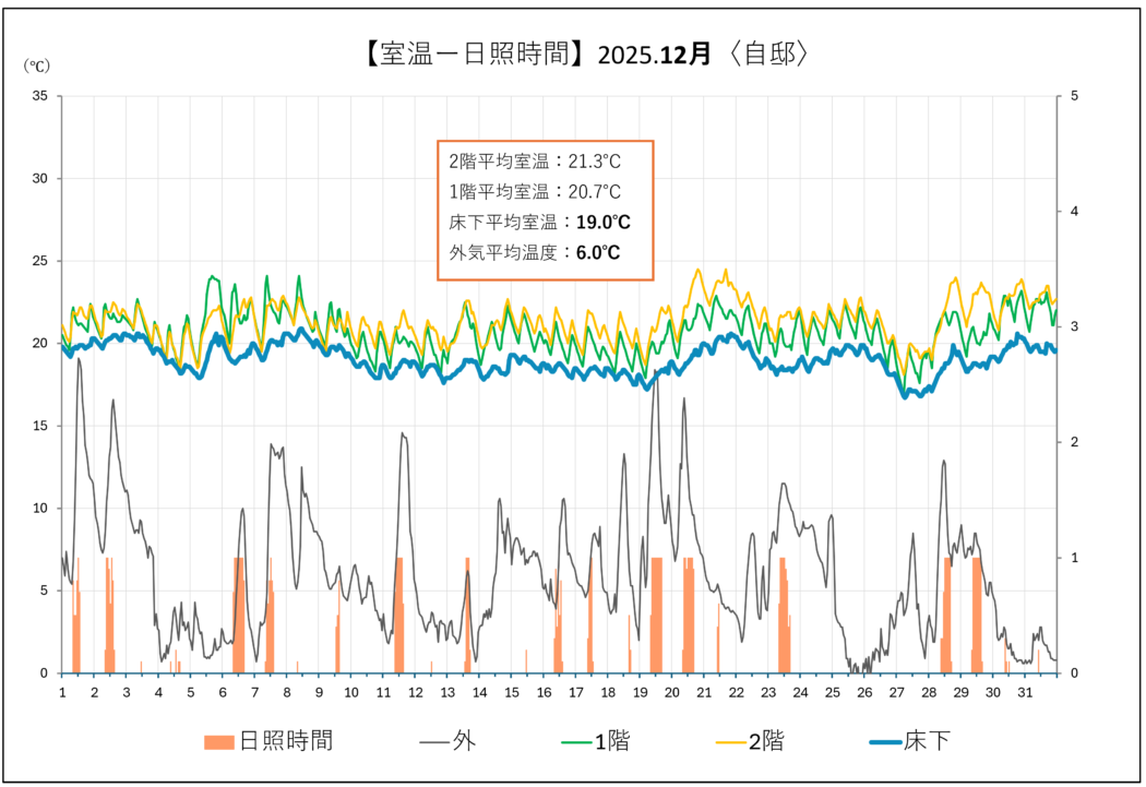 〇1月を通して1-2階とも快適温で安定。