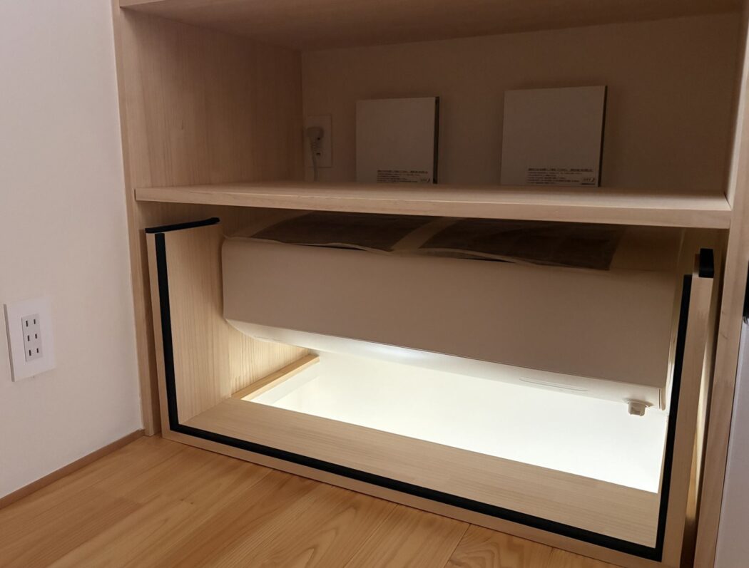 (エアコンを床埋めせず「床上」に設置している)