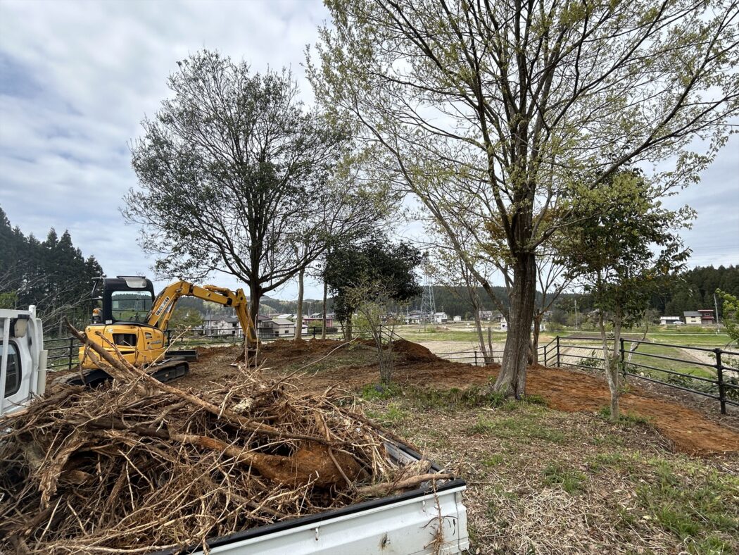 2024年春、笹の根や切株などを取り除き地面を整える。