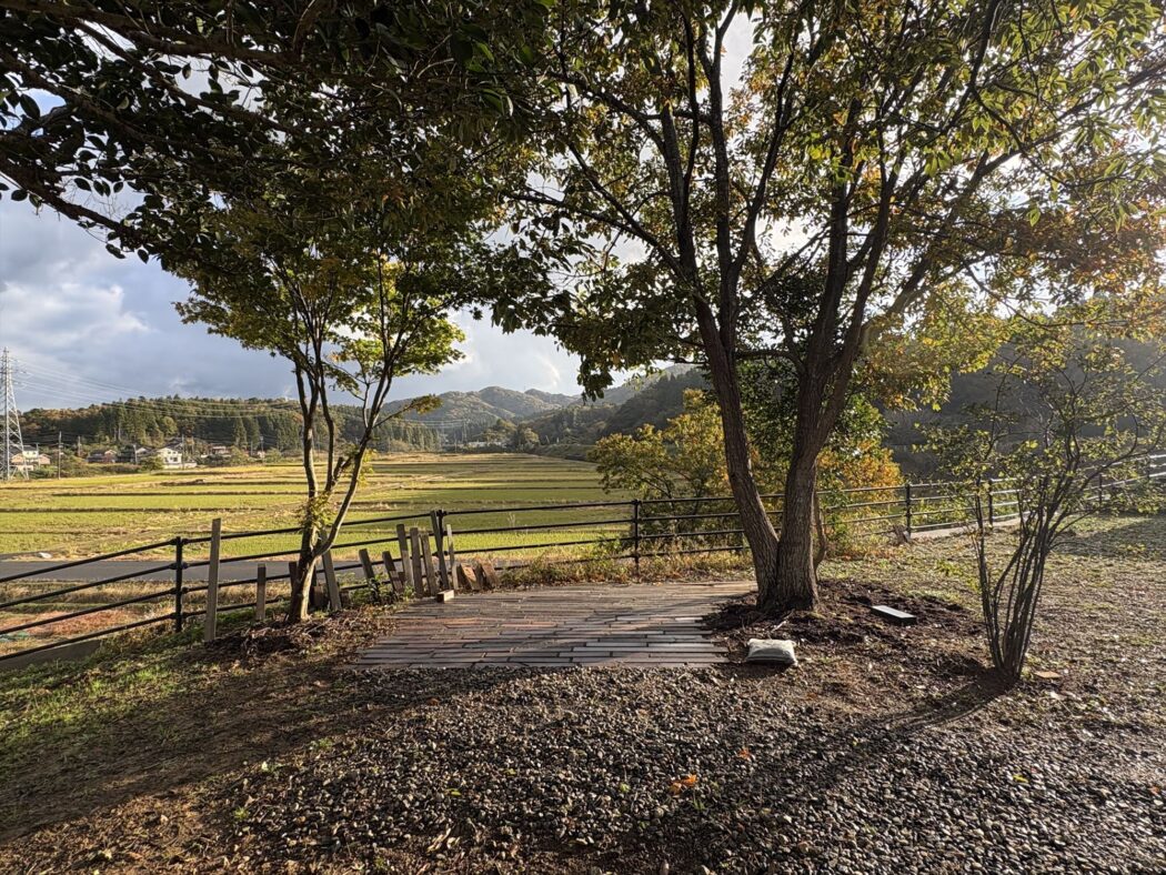 【暮らし】自邸-秋の森『稲刈り-紅葉-落葉-砕石板敷き。』自然を感じる暮らし。-手間が幸せを造る- - 住宅設計エスネルデザイン