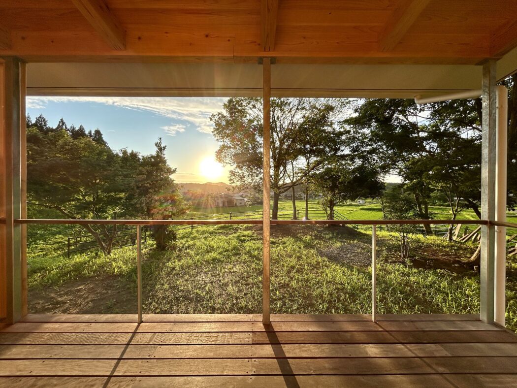 【暮らし】自邸-夏の森『緑-稲穂-夕日の風景。』ウッドデッキ玄関ポーチの感動。-自然を感じる暮らし- - 住宅設計エスネルデザイン