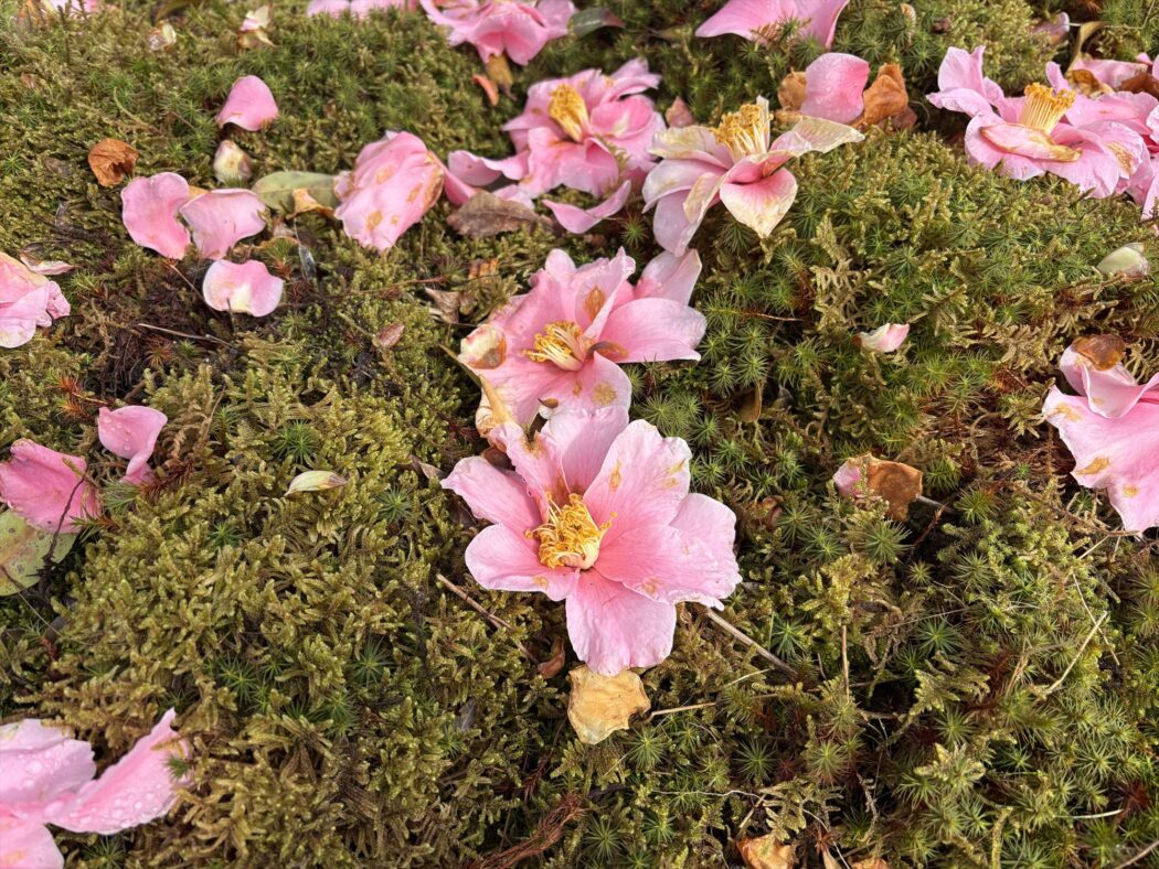 コケに広がるピンクの絨毯。