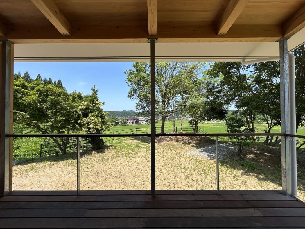 【暮らし】自邸-5月の森『新緑-水田の風景。』グリーンウインドウ-ウッドデッキポーチ。-自然と生きる- - 住宅設計エスネルデザイン