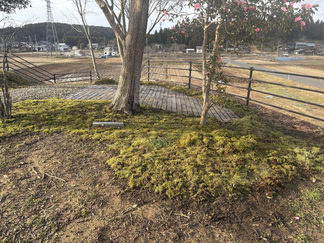 2026年春、小道を残し概ねコケ張り完了。